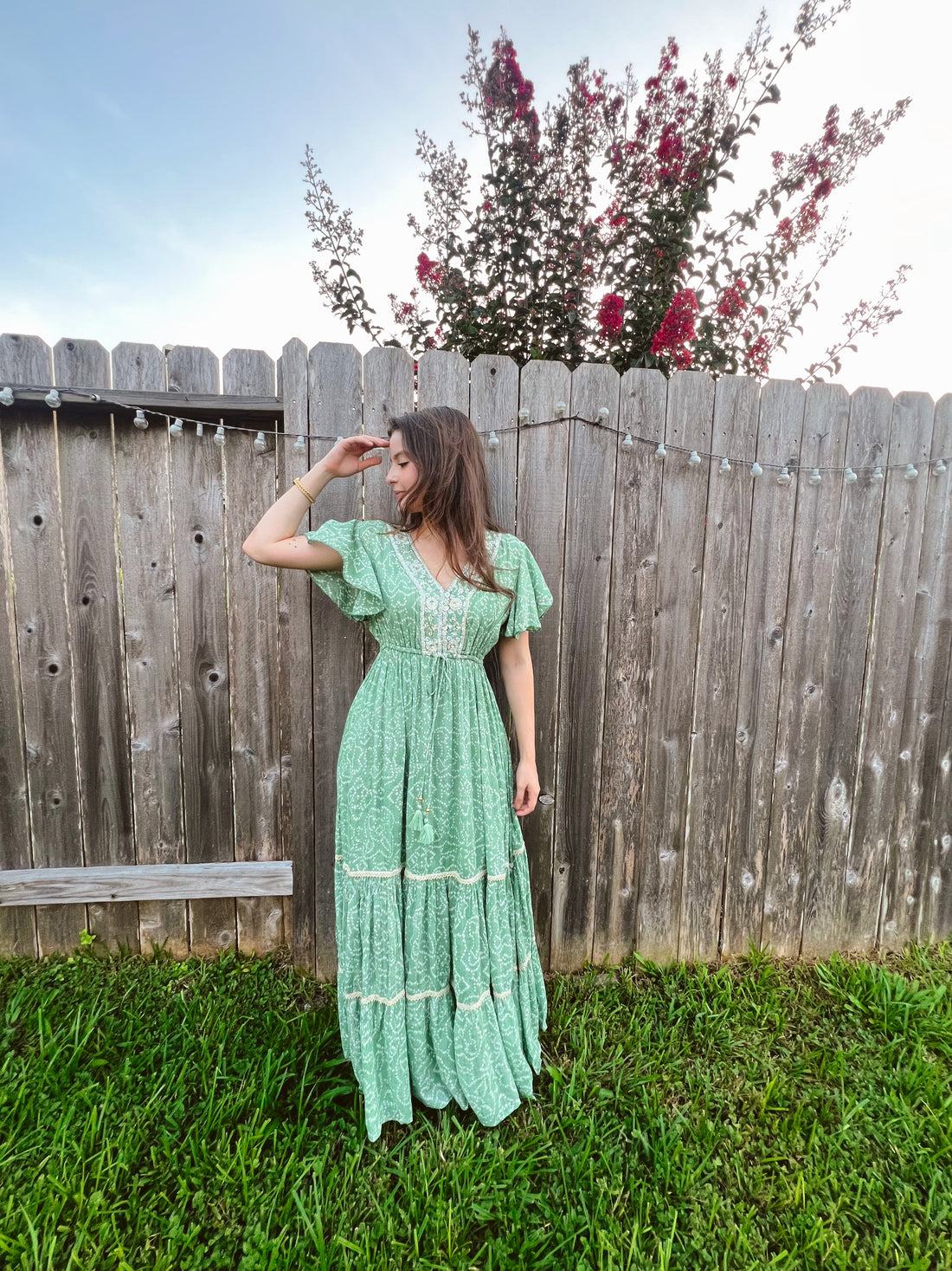 PARIS BLUE 3/4 BELL SLEEVES LONG DRESS