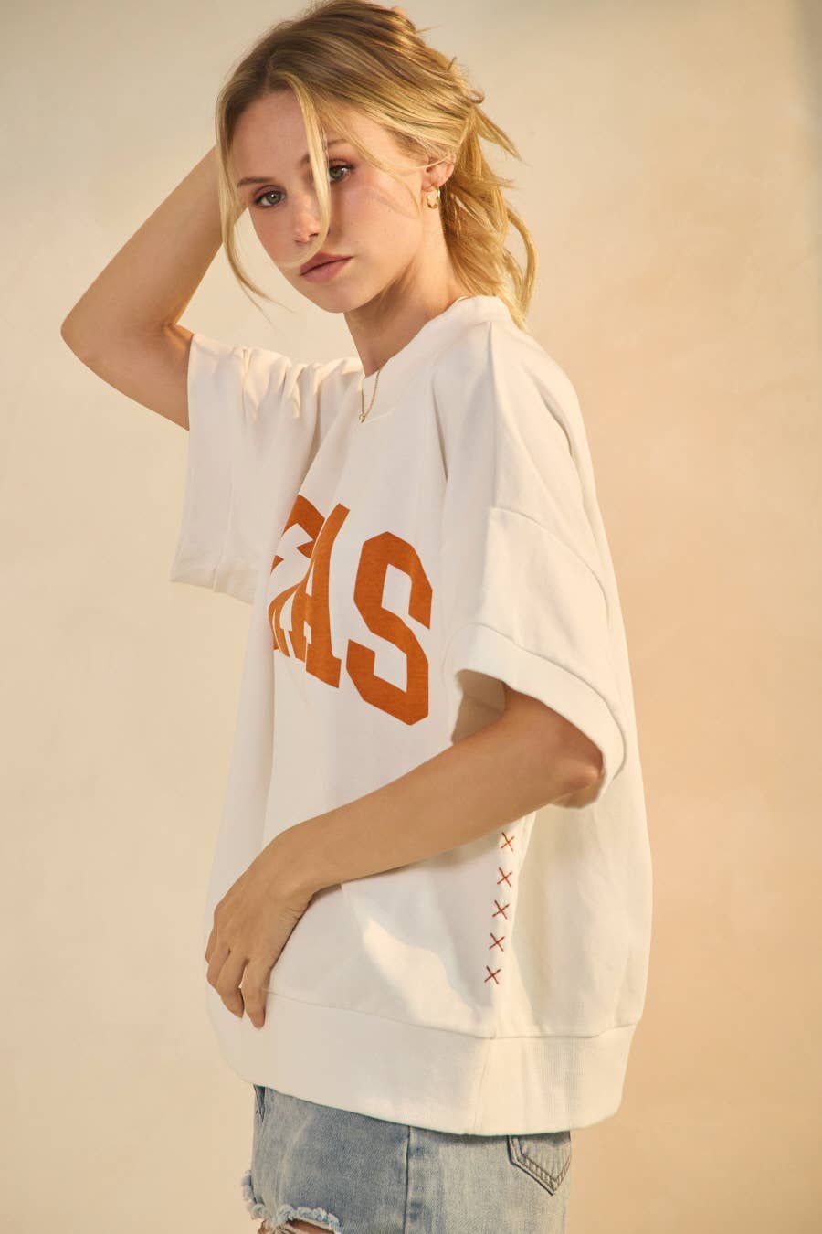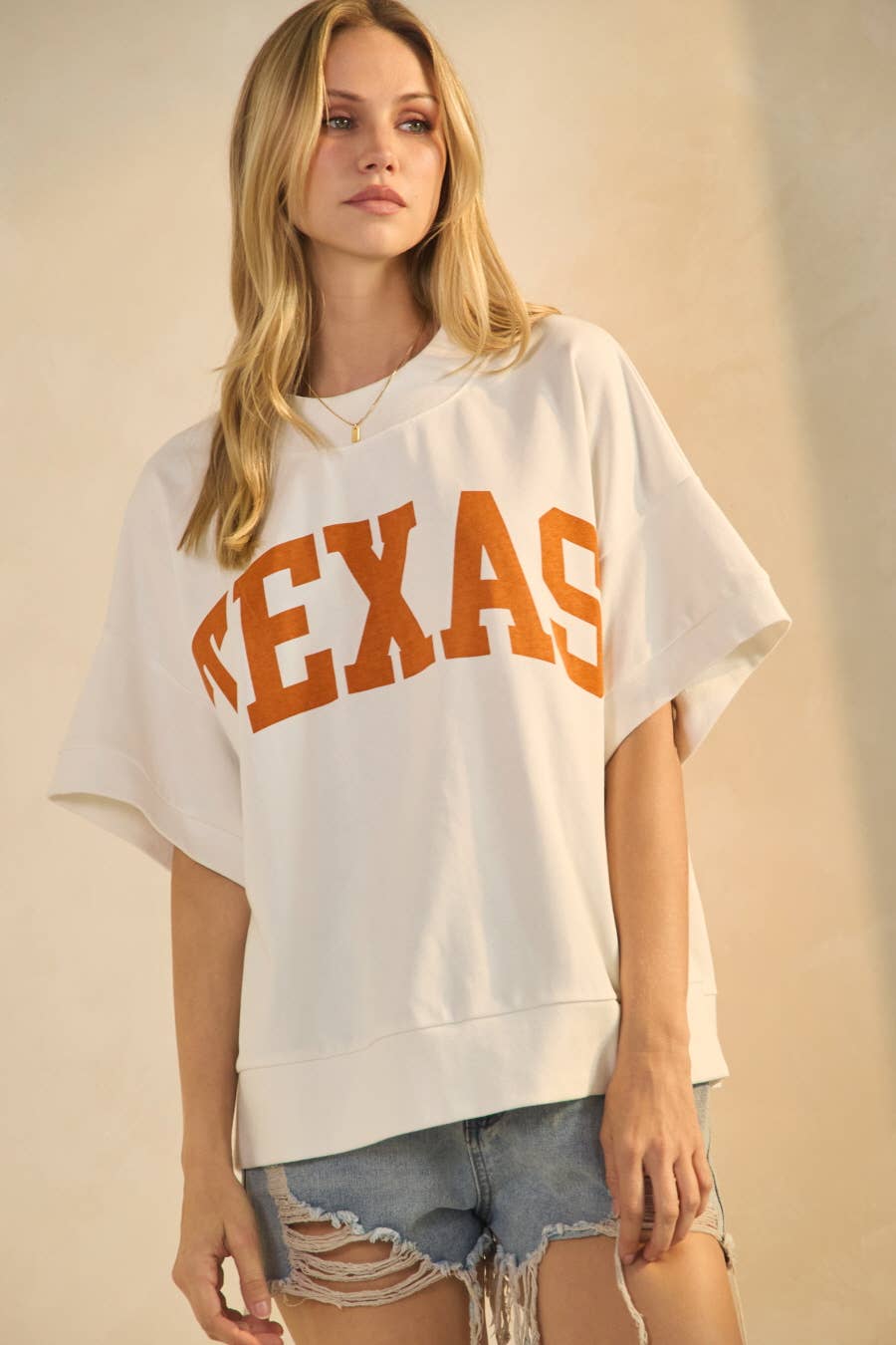 This oversized sweatshirt tee combines a relaxed, vintage vibe with bold TEXAS lettering across the chest — perfect for game days, weekend strolls, or just chill Southern charm.