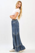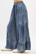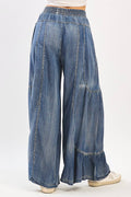 Washed Chambray Tier Detail Wide Leg Pants